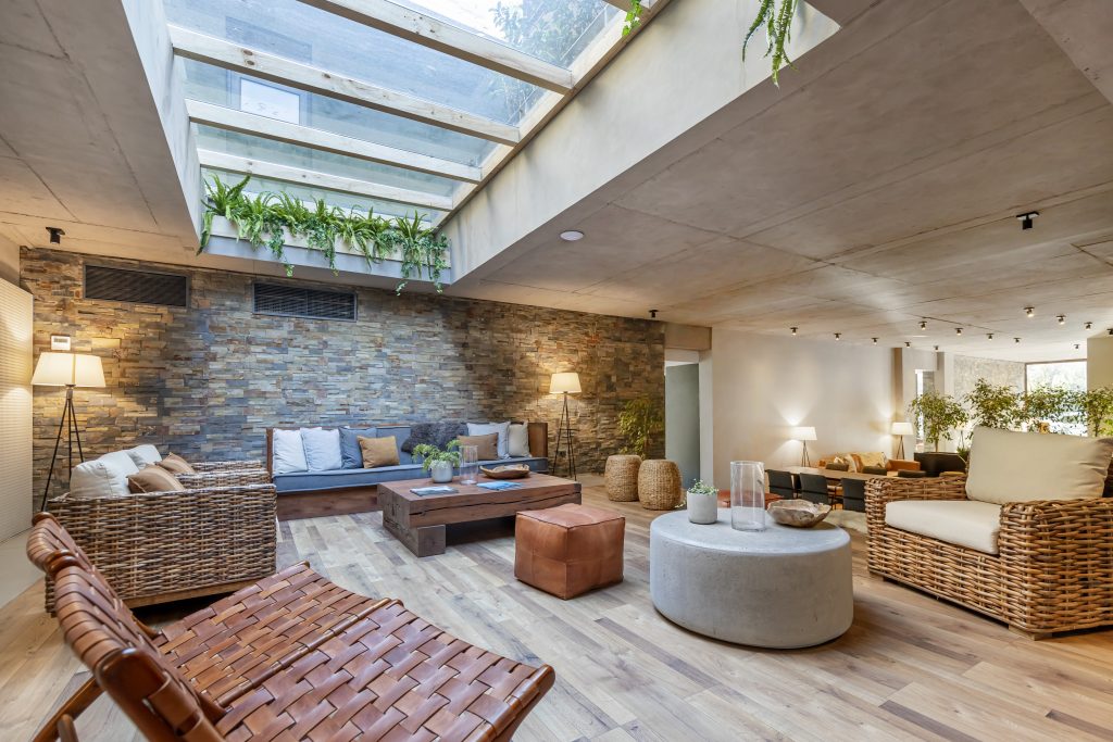 Espacios que complementan tu apartamento; disfruta de la flexibilidad y comodidad de trabajar en el Cowork, un entorno que se adapta a tus necesidades. Inspirado en la naturaleza disfruta de este entorno, ya sea en un cómodo sofá, en una sala de reuniones o en la terraza.