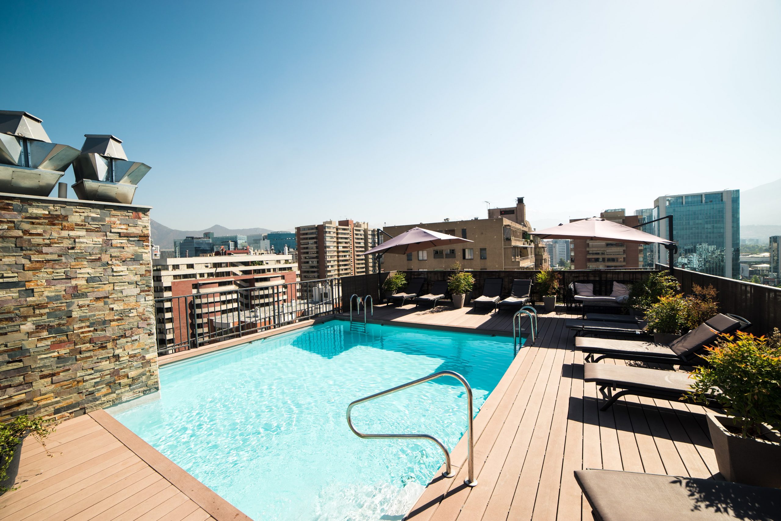 Disfruta de nuestras áreas que ofrecen descanso y tranquilidad, toma sol en nuestra piscina y Rooftop con una increíble vista de Santiago y áreas verdes que se integran al entorno urbano. Ejercítate en el Gimnasio para promover un enfoque integral para tu viaje.